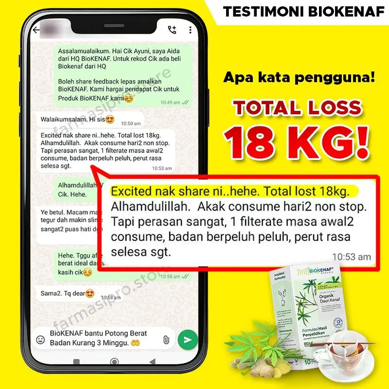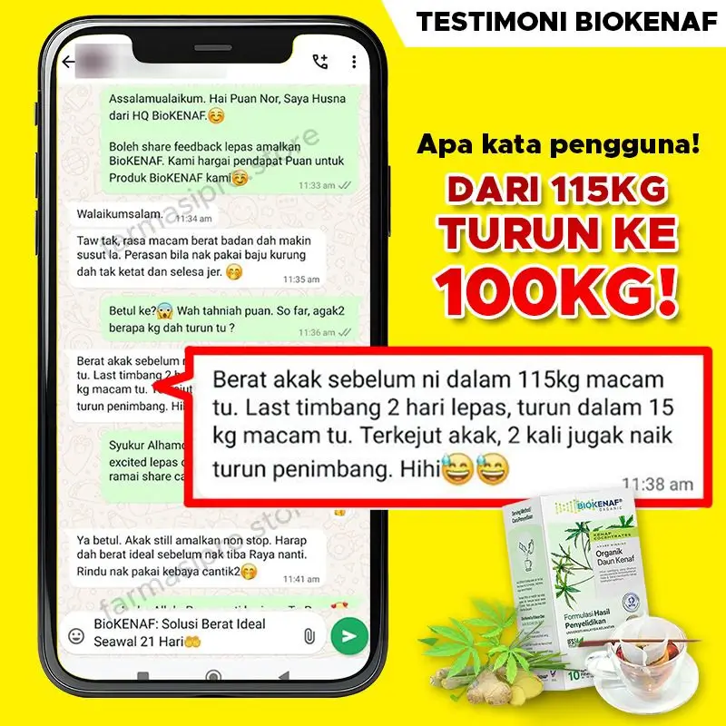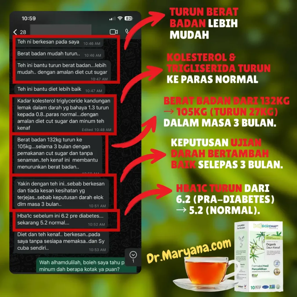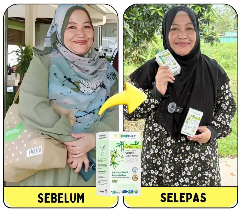 “Haritu 68kg, sekarang dah turun! 🔥 Rahsianya? BIOKENAF® – kawal gula, bakar lemak & bagi tenaga.”