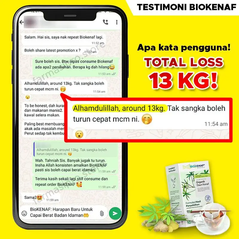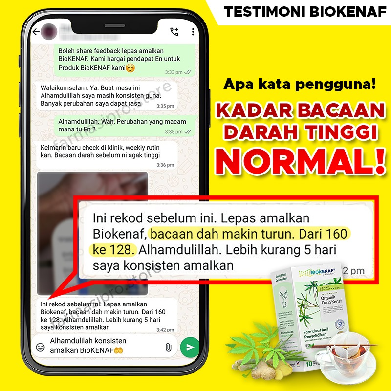 Hari demi hari, semakin ramai kongsi kisah kejayaan mereka. Ini antara ratusan testimoni yang kami terima tentang kesan BIOKENAF®.