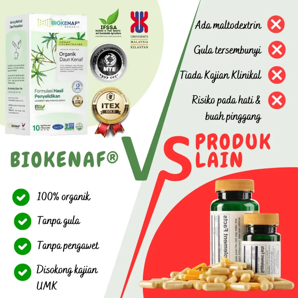 👉 Ya. BIOKENAF® disokong kajian Universiti Malaysia Kelantan, menang anugerah inovasi antarabangsa & diluluskan MeSTI. Lebih 120,000 pengguna sudah mencubanya dengan selamat.
